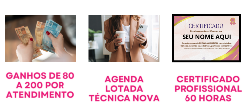 R: Aqui no curso você vai ter acesso a técnica atualizada mais completa e com um certificado de 60 horas para se tornar reconhecida e realizada na área